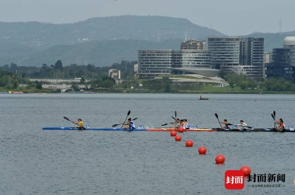 8月9日,2025年第12届成都世运会皮划艇马拉松项目短距离比赛在成都兴隆湖举行。该项目水上航道长1090米,陆上跑道长110米,每圈赛道长1200米,总赛程为3400米。比赛现场你不仅能看到运动员娴熟高超的划水技术、强大的力量和耐力。还能看到运动员“扛艇或拎艇跑”上110米,是项目的独特环节,使比赛具备趣味性和观赏性。